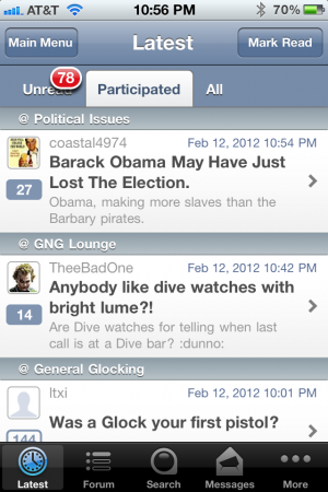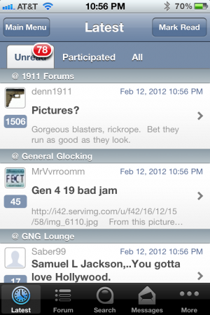 My first return to message board was RimFire Central because my first pistol was a Ruger Mk III “678” Target. At that time, I was maneuvering clumsily via their web interface. It felt antiquated and it was tough to sort out my latest posts or responses I needed to engage. Later, after getting my first Glock, I joined Glock Talk via my iPhone and it offered me the ability to download OutdoorHub, the sponsored app for GT. It opened everything up for me because it became as easy to track new content, unread posts and replies, and engage both via the boards or via personal message from one single place.