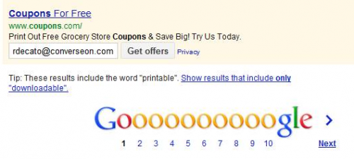 Talk about removing friction! Google has been playing with these so-called ad extensions for some time, but think about how much easier it is to sign up for something on the search results page than having to click through to the web site and figure out what to do.