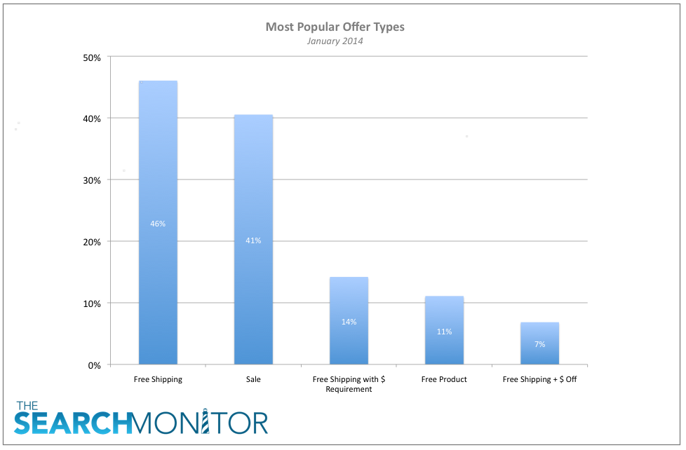 Note on Chart: All data is from Lighthouse by The Search Monitor (Jan 1-21, 2014). Figures sum to greater than 100% since a single ad could contain more than one offer type.
