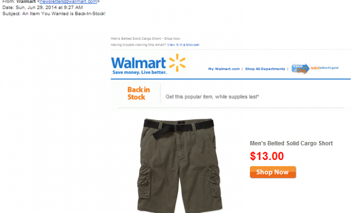 My wife Linda showed me an email that Walmart sent her, shown above. She told me that this is the first time she has ever bought something in response to an email solicitation. What did Walmart do right?