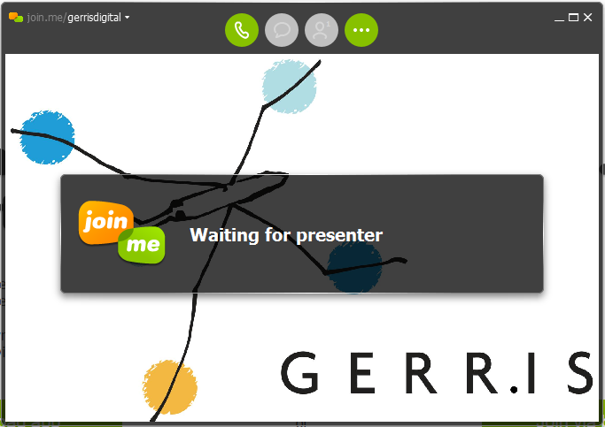 I personally like join.me because I can offer my clients international dial-in numbers and readily share my screen. But, let’s assume that your wanderings don’t include the entire world, you can always use one of a number of free conference call providers such as FreeConferenceCall.com and UberConference. Many people do their meetings using GoToMeeting, though I, myself, prefer join.me because you can use it for free; and, if you pay for premium, you can get a spiffy bespoke white label version of the tool with your logo and so forth, like this: join.me/gerrisdigital, which I like.