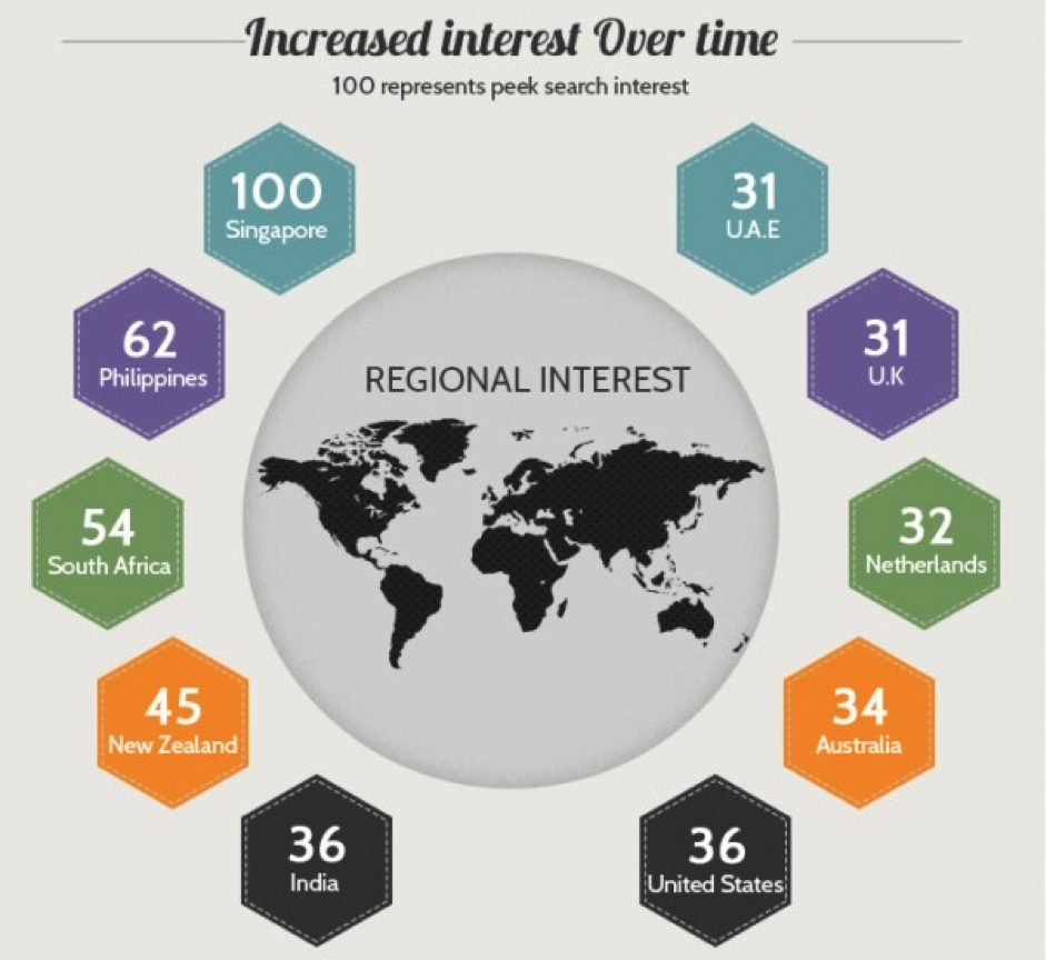 As you can see, depending on the country or region(s) your target audience is in, you might consider using infographics more often in countries that have a high interest in them. As you can see from the infographic above, several APAC countries including Singapore, Philippines, New Zealand, and Australia top the list of high regional interest in reading infographics. Analytics show that the keyword “infographic” is trending in Singapore, Philippines, New Zealand, and Australia. When you target and personalize your content, the result is an increased engagement and return on your investment, as it would be with any other marketing effort.
