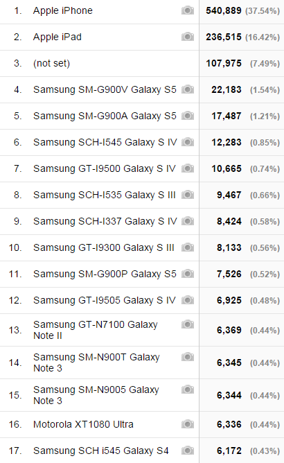 And, of those mobile devices, you can drill down a little more: iOS for the win, as we all know — at least for this website: