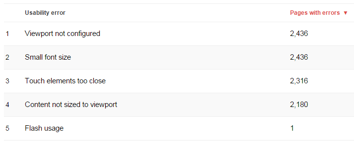 “So, what’s the big deal?” you ask, “I can access all of the pages I want with all my devices by dragging around my site, pinching and stretching to the parts I want, and then clicking and exploring. So why do I need to change?” Well, for two reasons: Google wants you to change and considers your lack of support for mobile devices to be a “Usability Error” (see below).