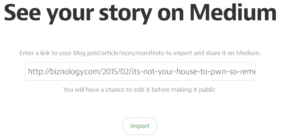 With Medium, however, all you need to do is click “Import story” et voilà!