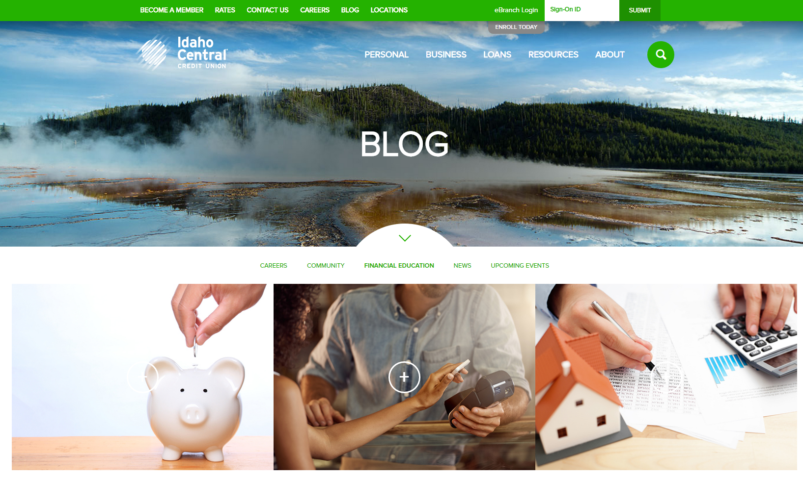 For example let’s looks at a local business from my hometown Boise, Idaho. Idaho Central Credit Union (ICCU) serves as a great example of a company that has invested in content marketing and is doing it right. Looking at the ICCU blog, you can see there are a number of helpful resources here: