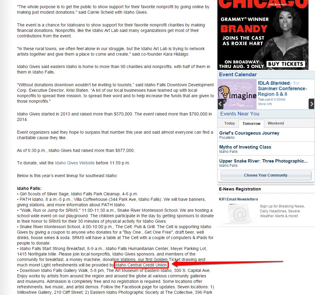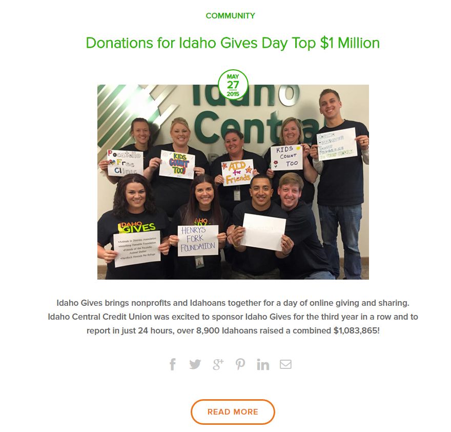 Using the ICCU example again, we can see that ICCU has been implementing several PR strategies, including their recent sponsorship of Idaho Gives Day.