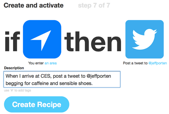 - If you don’t see what you need, please give IFTTT recipe-making on your own a try — it’s very easy and you can really hit the nail on the head of your own explicit needs if you take the time to follow three guided steps.