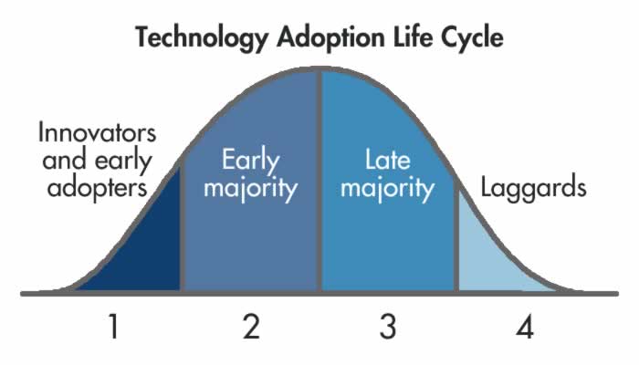 The world adopts new network tech faster every year. Accelerate through the first stage of innovation, get to the early adopters, then turn other threatened companies into allies to scale and grow a new people-first majority sooner.