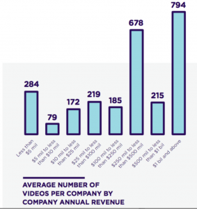 One business video trends dataset that seems to defy explanation is the correlation between company size and the volume of video production. To be sure, the largest companies produce the most videos, but the smallest companies are outproducing the rest. Maybe the only practical technology business guidelines that can be drawn from as I see it, is that no matter who you compete with, there’s a good chance that your competitors are producing more videos than you are 🙂