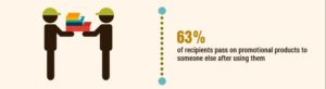 63% of recipients pass on promotional products to someone else after using them. When compared to other types of advertising, promotional products have the ability to increase your exposure when others see the recipients using them. It can actually act as an endorsement of your company or brand.