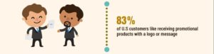 83% of U.S. customers like receiving promotional products with a logo or message. Promotional products are very different from other types of advertising in that they are actually sought after instead of ignored or forwarded through like television commercials. This makes promotional products a unique choice, but also an effective choice.
