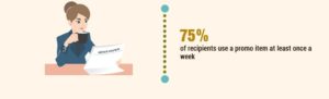 Promotional items are used by 75% of recipients at least once a week. What other advertising method is purposefully looked at and used by your company’s target audience? This helps increase your company’s branding and shows what a great investment promotional products are.