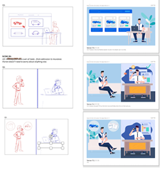 More often, you’ll see sketches that show how on-screen action is supported by the words being spoken. This is the best time to make adjustments to the words that will be spoken and the action on-screen.